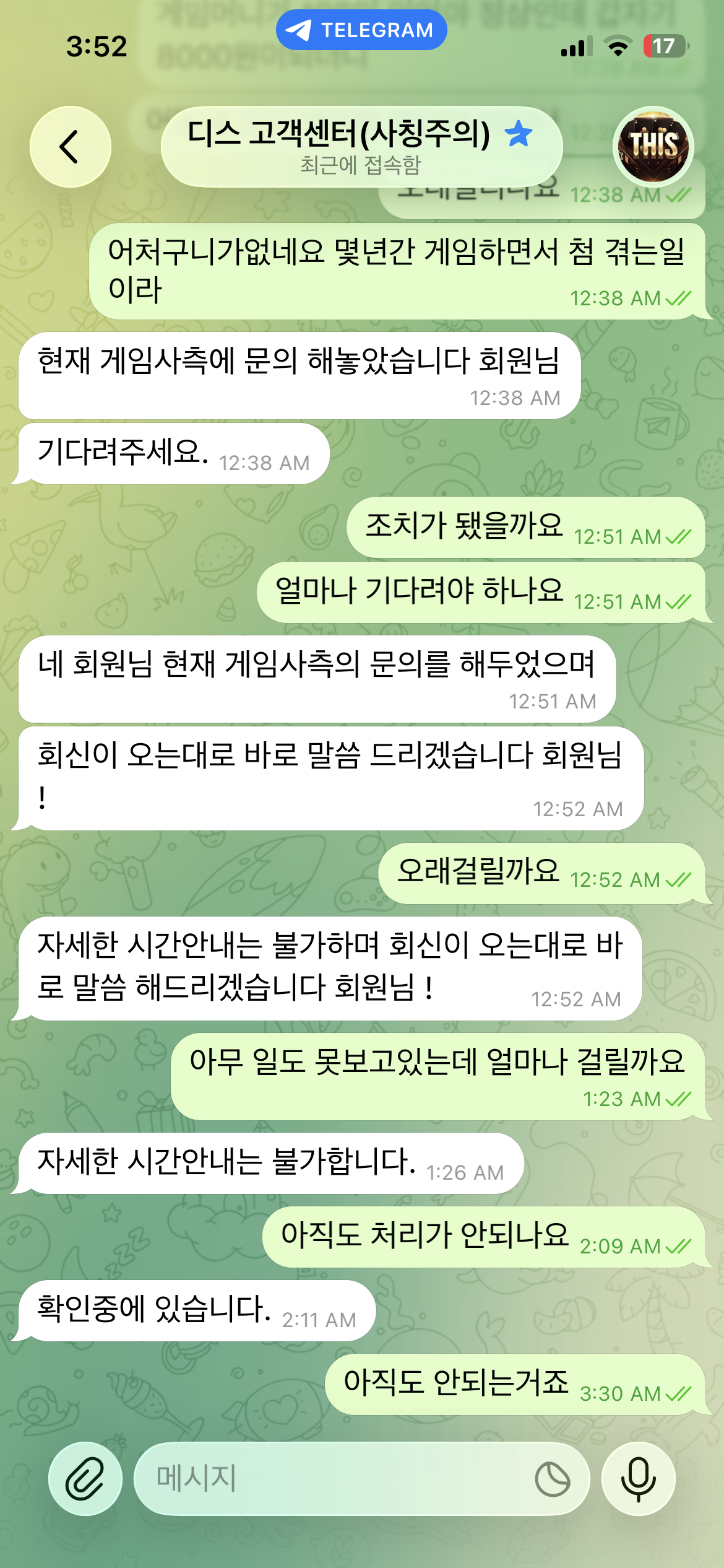 피해자가 마지막으로 받은 메시지는 답장이 아니었다. 카카오톡 단체 채팅방에서 추방 처리가 됐고, 개인 메시지함도 차단됐다. 문의를 남긴 지 사흘이 지난 시점이었다. 스포츠토토 사이트 디스(THIS)를 운영하는 도메인(th-001.com)에서 벌어진 일이다.